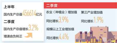 本报北京7月16日电 (记者陆娅楠)中国经济季度增速“V”形反转!国家统计局16日对外公布,初步核算,上半年国内生产总值456614亿元,分季度看,一季度同比下降6.8%,二季度经济增长由负转正,增长3.2%,经济运行呈稳步复苏态势。