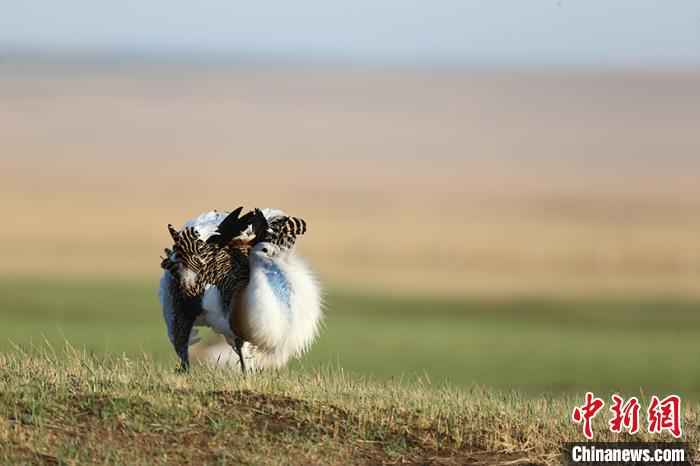 春季繁殖期的大鸨种群。(资料图) 潘晟昱 摄