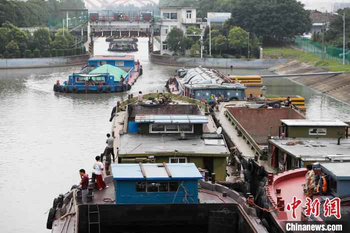 过往船只有序经过蕰藻浜西水闸。 殷立勤 摄