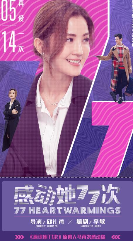 电影《感动她77次》改编自李敏同名小说,作为“77次系列”爱情电影的第二部,延续了电影《原谅他77次》的爱情故事,讲述了职场单身女孩Eva面对前任Adam迟来的忏悔和挽回,以及新恋Marvel的浪漫追求,身处其间难于抉择的故事。一如爱情态度版海报,女主角蔡卓妍置身于数字“7”中,而马里奥和周柏豪则分别或坐或立于另一数字“7”上,两组 “77”CP仿佛预示着不同的爱情选择,将带来截然不同的爱情结局。