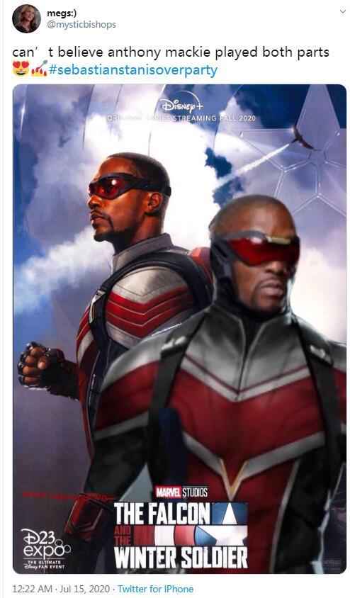 有网友自制了没有塞包出演的《猎鹰与冬兵》海报:“没想到安东尼·麦凯又演猎鹰又演冬兵”。