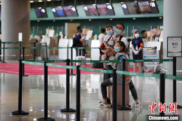 旅客佩戴口罩在虹桥机场T2航站楼内等待出发。 殷立勤 摄