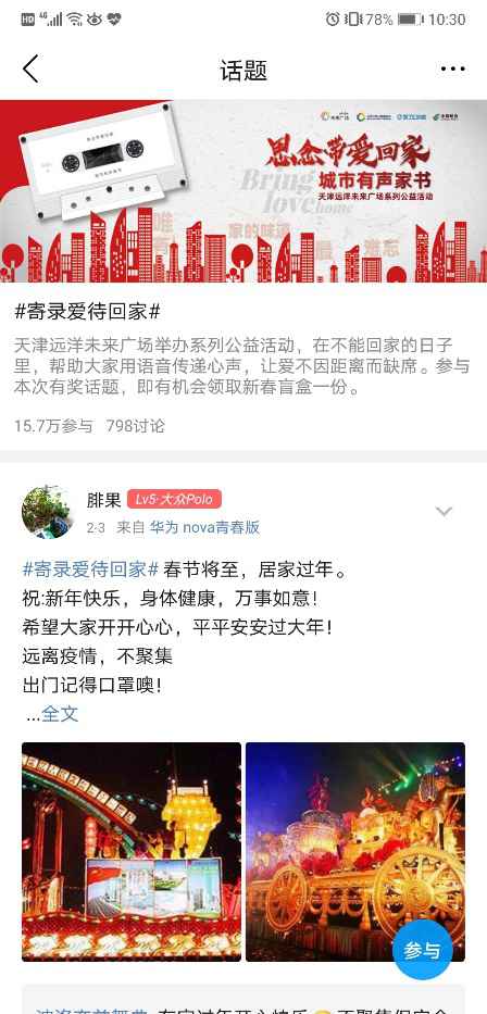 致敬异乡人,寄录爱回家。2021年2月6日-7日,天津远洋未来广场积极响应政府号召,联合远洋之帆公益基金、饿了么外卖、中国邮政共同举办“思念带爱回家,城市有声家书”系列公益活动。时值年节之际,感恩“留津人”的平凡奉献,用实际行动展现城市温度和企业担当。