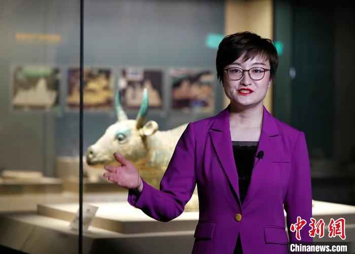 宁夏博物馆讲解员周文訸介绍镇馆之宝西夏“鎏金铜牛”。 于晶 摄