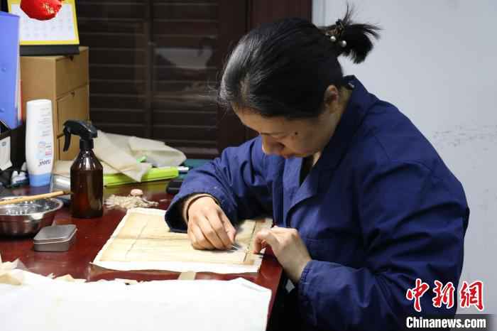 “一本196页的家谱,我和一位老师修了两年。6张纸粘连成1张纸厚度,我们只能半个字半个字地揭,再把揭下来的字,拼接粘连进行修复。”在浙江图书馆,古籍修复师汪帆已修了13年书,她说修古籍好比修行,要耐得住寂寞,经得起折腾。
