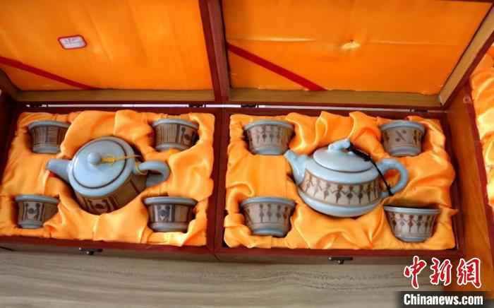图为含有宗日文化图腾元素的茶具。 肖玉珍 摄