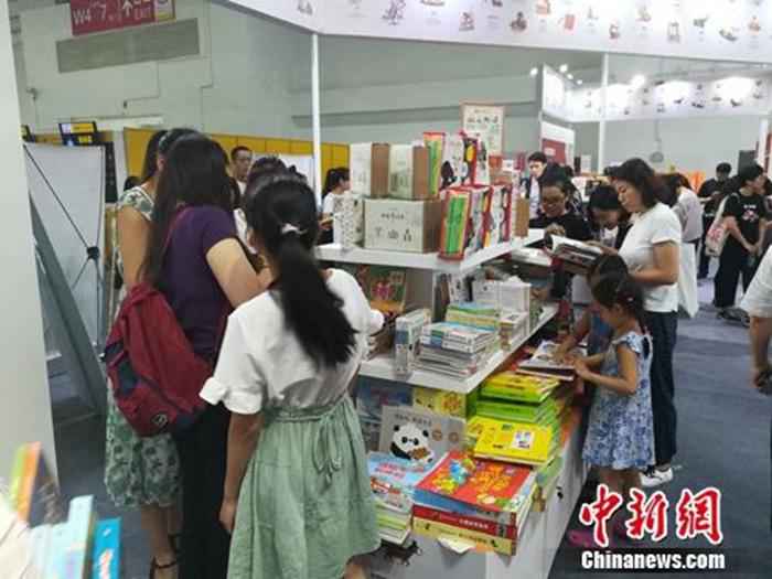 资料图:图博会上,童书展台吸引很多参观者。上官云 摄
